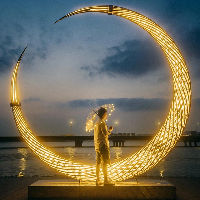 Modern 304 Stainless Steel Moon Shape Art Sculptures IP65 Landscape Wedding Holiday Thanksgiving Christmas Halloween Decorations