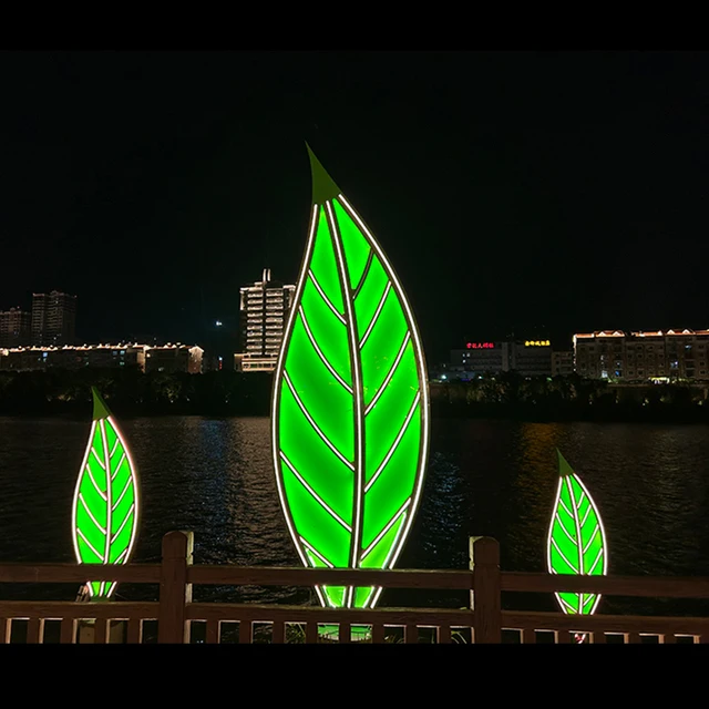 Large Garden Park Decorative Landscape Lamp Stainless Steel Body with Luminous Tree-Shaped Leaf IP65 DC Power Supply